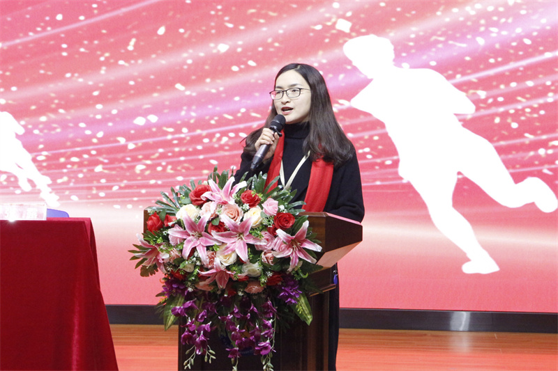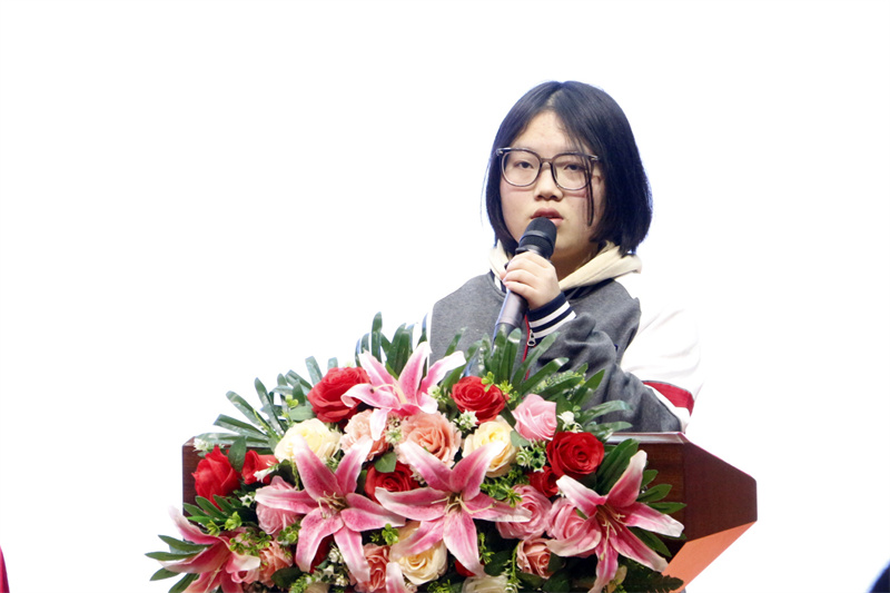 表演结束,由学生代表张宇轩发言,她“敢于与自己较量”“无法左右天气,无法预测未来,但要决定自己努力的方向”的霸气宣言显示出初生牛犊不怕虎的志气与胆气,为大家打了一剂强心针,胸中鼓动着突破困难的勇气。