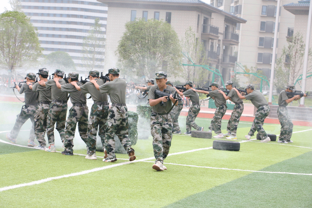 在响遏行云的军歌中,在笔挺如松的站姿里,在遒劲有力的摆臂间,莘莘学子们展现出来的不再是初入学时的懵懂迷茫,而是铁一般的纪律,钢一般的坚强。
