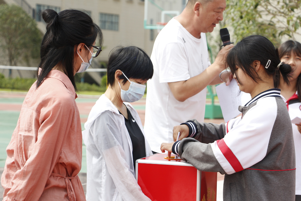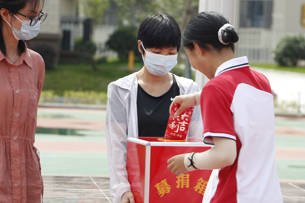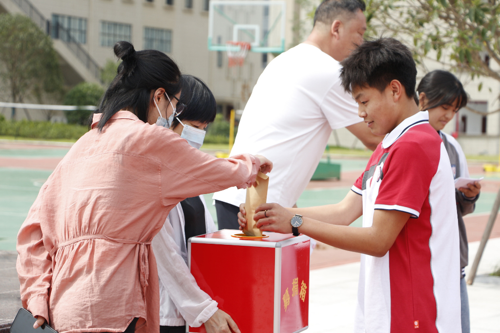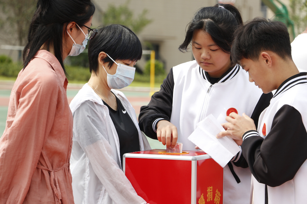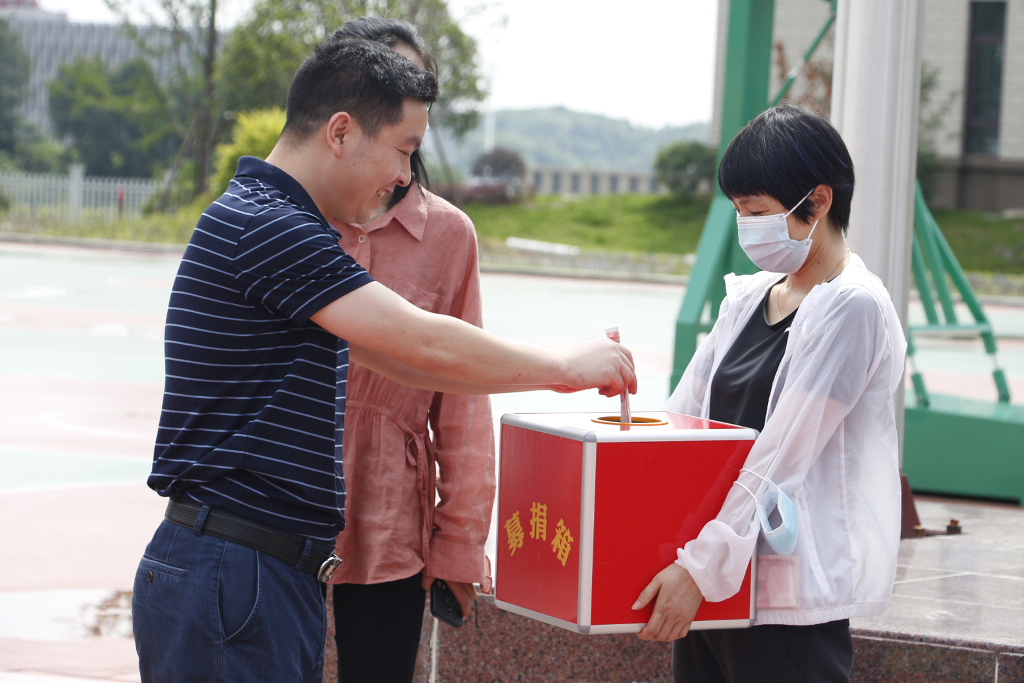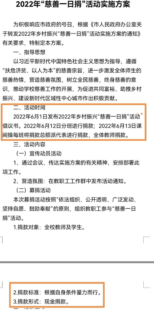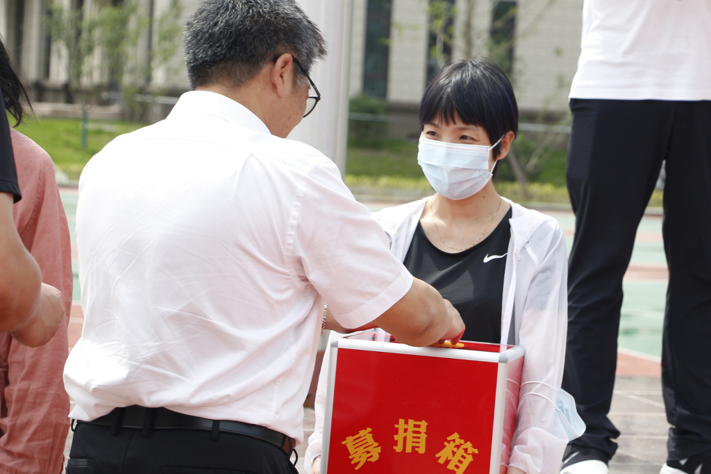 党办与学工联动,于6月1日发布2022年乡村振兴“慈善一日捐”活动倡议书。6月12日班会课由班主任分班进行捐款,6月13日利用升旗仪式进行捐款。由执行校长李校长主持此次捐款仪式,每班的捐款总额由学生代表进行捐款,学生代表捐款结束后,全体教师进行捐款。