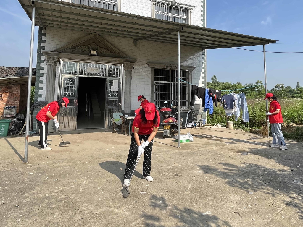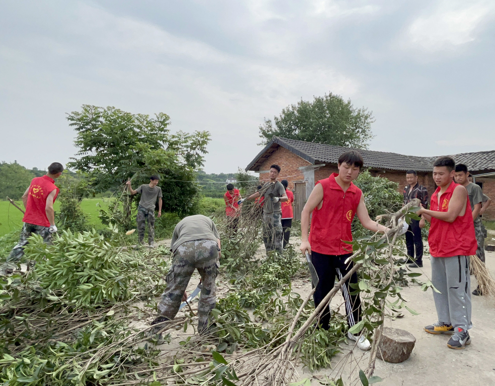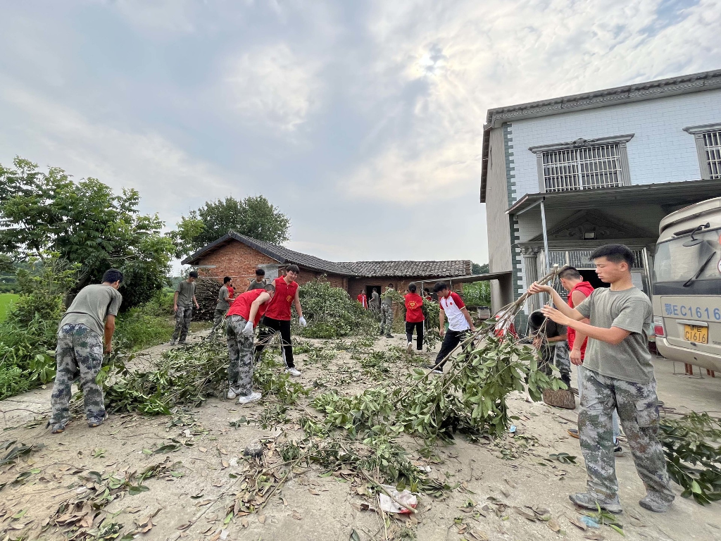 随后,在马书记的带领下,我校师生到达村民家中,给他送去了书包、笔记本、铅笔、绘本、食用油等物品,捐助现金2000元。由于腿脚不便,田间荒草疏于打理,门前杂树交错,段超、周亚姗带领张科松、郑俊豪等同学迅速投入到劳作中去,为村民清理门前桂树,田书记也展现出了党支部带头人的劳动本色,拿起锯子、撸起袖子就带着同学们一起干起来。田书记在劳作的过程中不忘交给孩子们锯树的专业要领。