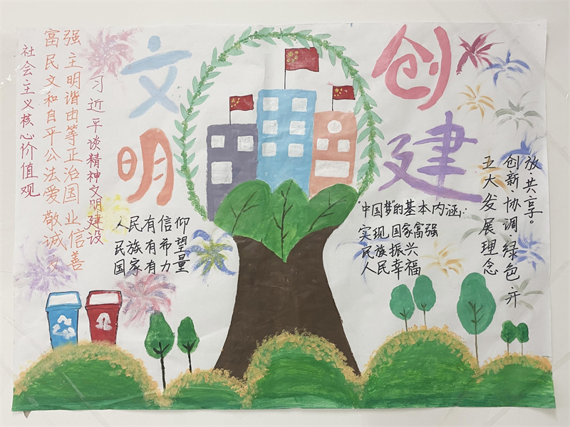 漫步教学楼,一间间教室布置温馨,色彩斑斓的板报、墙画,催人奋进的格言标语,风格迥异。或活泼、或典雅、或艺术、或简约……彰显着各具特色的班风和班级文化。