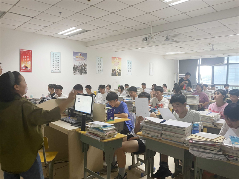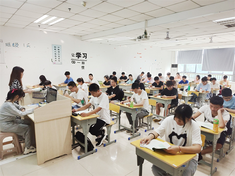 课堂上,师生协力,灌注心血,同学们倾耳倾听,俯首苦读,埋头苦思,眼里有光,学习生活充实而满足。这是我们心灵栖息的港湾,是我们畅游书海的乐园,是我们奋笔疾书的战场。课间,同学们踱步走廊,凭栏而立,欢声阵阵,笑语盈盈,同学情正浓。