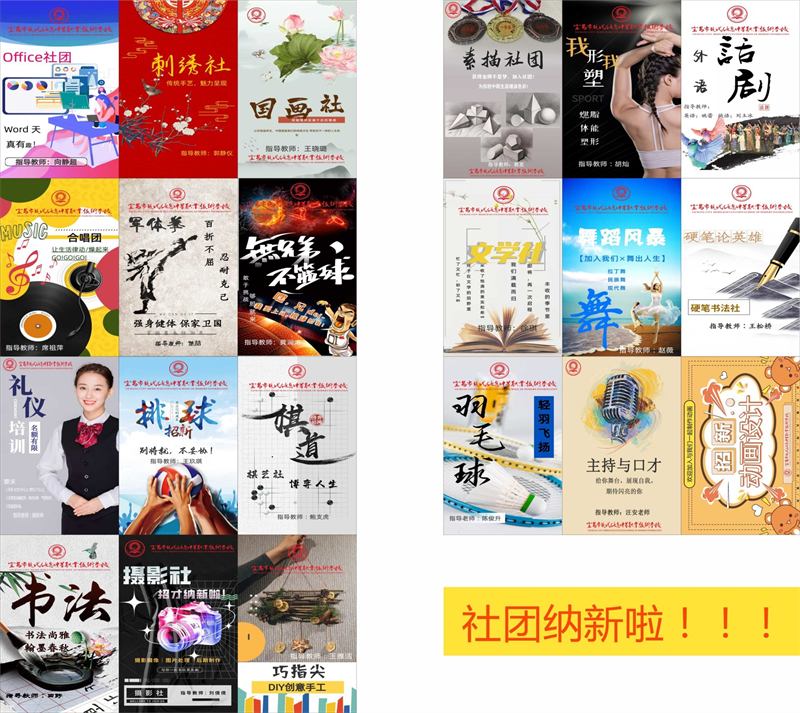 社团更是现代学子们挥洒青春,激扬文字,摄营养、挹清芬的乐土。学期伊始,社团的招新活动就已开展地如火如荼。招新现场人声鼎沸,为了满足同学们的兴趣爱好,书法社、手工社、摄影社等应运而生;为了强健同学们的体魄,军体拳、羽毛球等社团齐头并进;为了提升同学们的实际技能运用能力,动画设计、office应用社团整装待发。