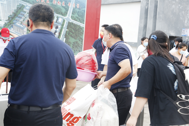 我们全体教职工是保驾护航的筑梦人,当学子们踏入校园,志愿教师专候在侧,搬运转,东西与南北,清扫铺,床前与屋后,宿舍入住,个个不落,让新生一扫雏燕离巢的惆怅,沉浸家的温暖,感受学校的人文关怀。
