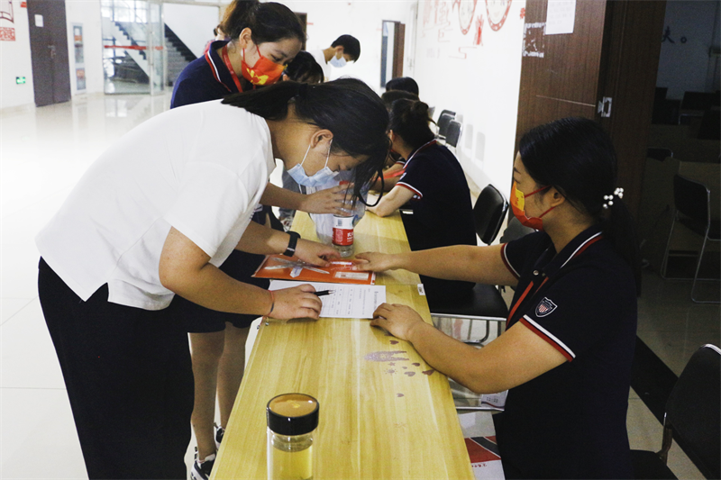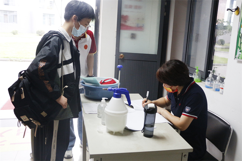 入学第二步:测体温+查看健康监测书。