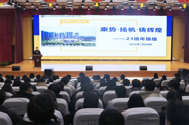 为总结元月备考成果,表彰先进典型,凝聚合力,明确冲刺方向,1月28日下午,现代信息学校在大礼堂隆重举行23级“乘势・扬帆・铸辉···