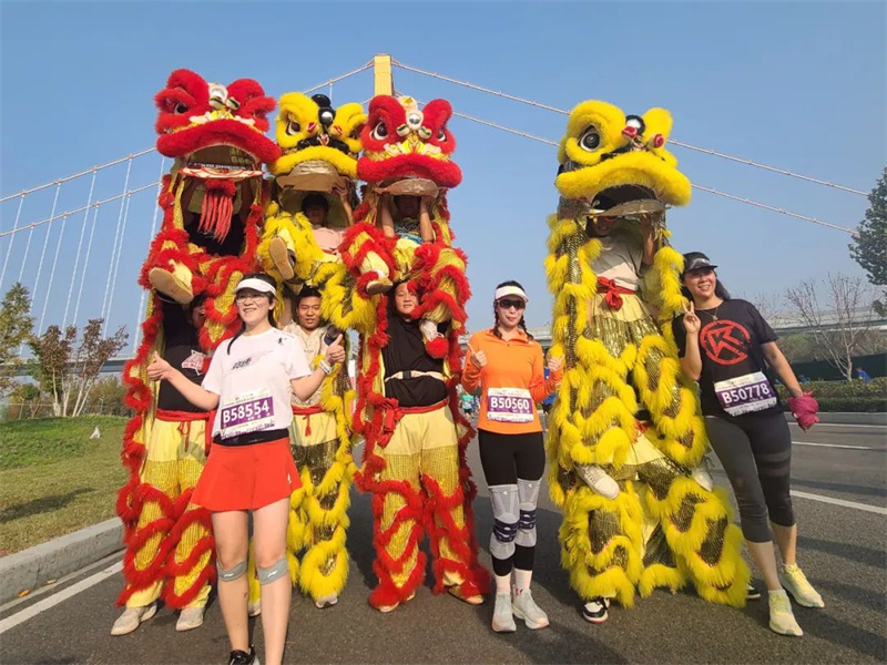 舞狮表演深受现场观众欢迎,与舞狮队拍照的运动员排成了长队,俨然成为活动现场最靓的拍照打卡地。