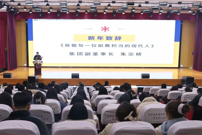 新年开启新征程,坚守实干向未来。朱宗桥以《致敬每一位挺膺担当的现代人》为题,代表董事会向全体教职工致新年贺词,肯定了学校过去一年来在办学、管理、对外交流多方面取得的斐然成就,赞许了师生在教科研赛中获得的丰硕成果。为全体教职工实干奉献、共绘育人画卷的2024年画上圆满句号的同时,他也表达了新一年的美好愿景,向全体教职工致以新年的问候和祝福。