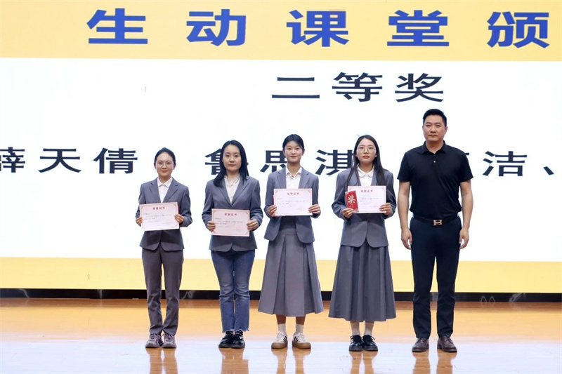 以竞赛为镜,照见初心;以课堂为舟,乘风破浪!李朝晖、肖飞、伍远明及教师发展处主任高瑛分别为“生动课堂”教学大赛获奖教师颁奖。学校聚教研组之智,集众科室之力,精彩呈现了来自7个教研组的21节生动课。教师的一次次课堂教学,是构成学校教学质量的“细胞”。小的“细胞”健康,大的“肌体”才会充满活力。在现今十四届全国人民代表大会第三次会议提出“制定实施教育强国建设三年行动计划”之际,建设高质量专业化教师队伍与提高教育教学质量势在必行。学校以形式多样化的教学技能比拼为抓手,不断自架“高标杆”,自念“紧箍咒”。