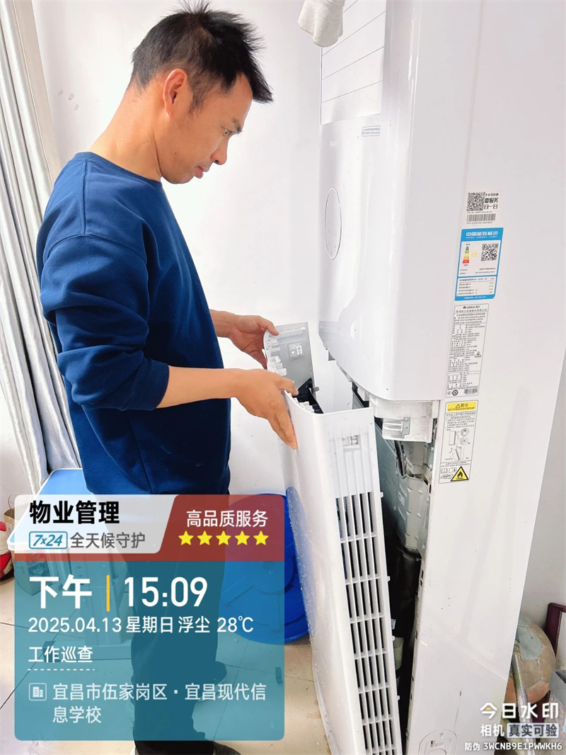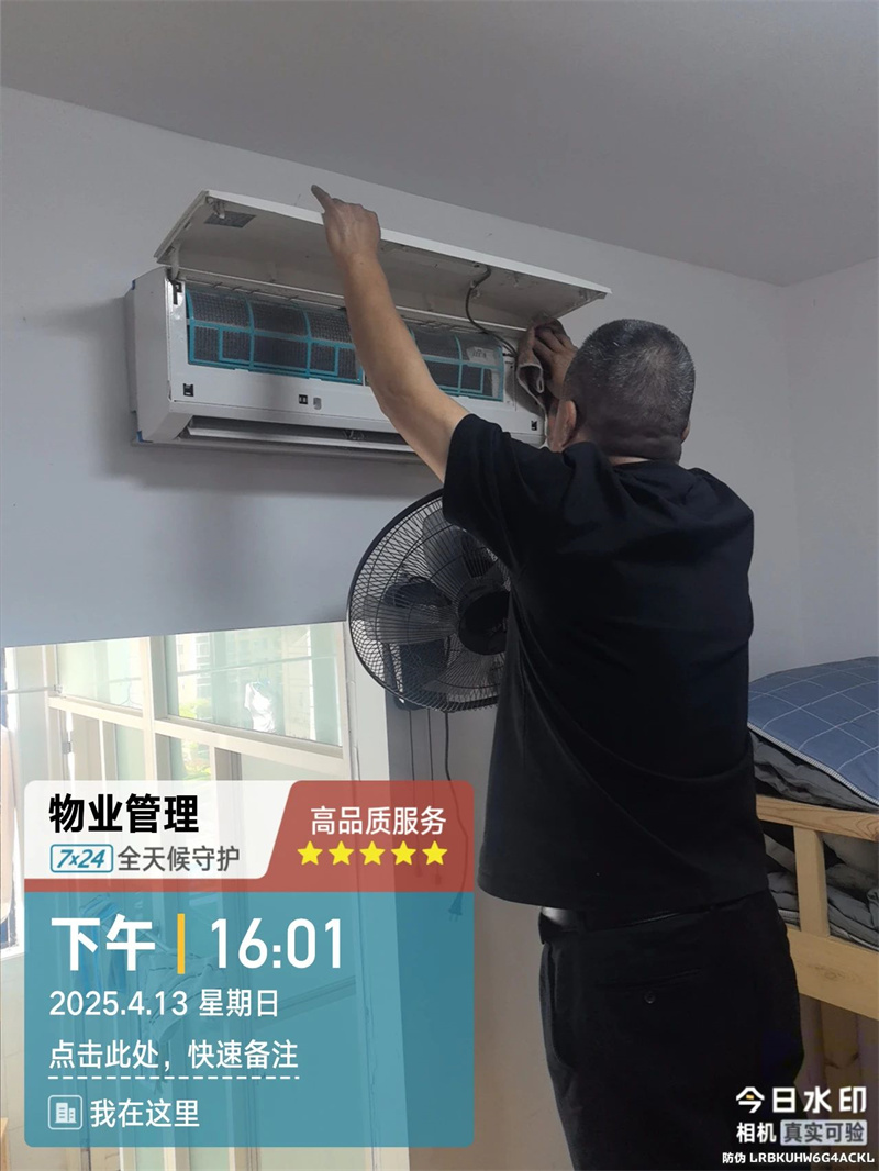 “空调作为长时间使用的电器设备,极易滋生细菌、螨虫,不仅影响空气质量,还可能引发呼吸道疾病。四月以来,随着气温逐渐升高,后勤保障部便早早部署,精心组织清洁标准学习,制定详细清洗计划。在清洗过程中,工作人员严格遵循标准化操作流程,逐一拆卸空调滤网、外壳,运用专业工具和环保清洁剂,深度清除内部沉积的灰尘、污垢及细菌。每一台空调在清洗后,都经过严格的安装调试,确保设备运行稳定、制冷制热效果良好。
