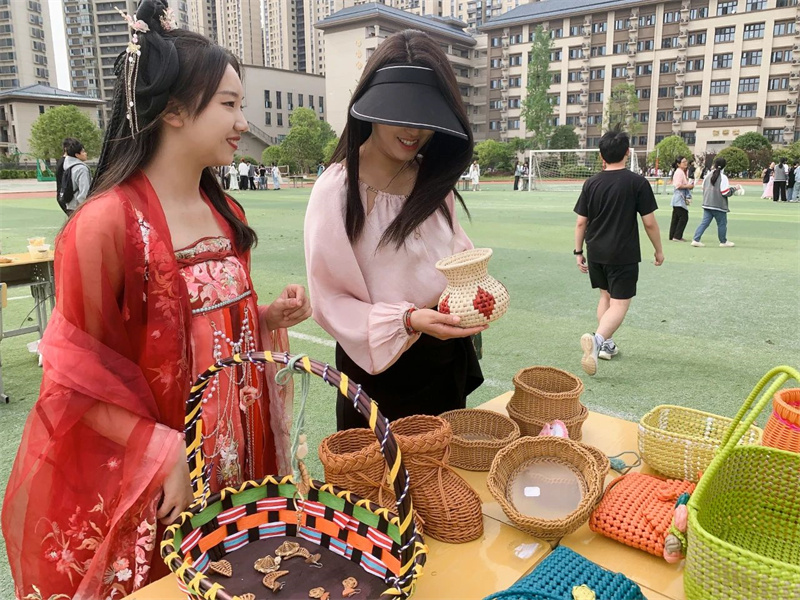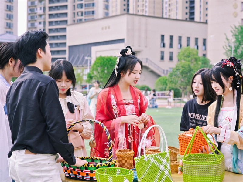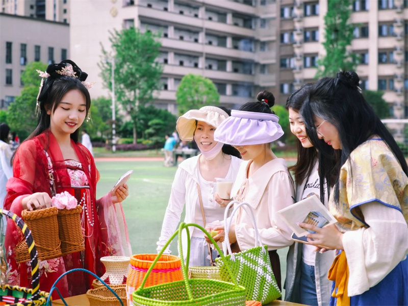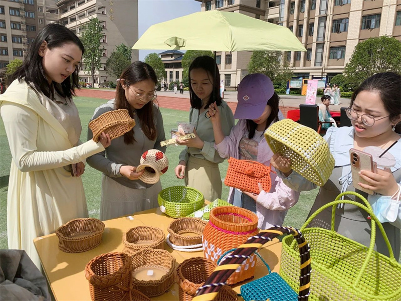 在活动的创意跳蚤市场中,一个特别的摊位吸引了众多目光。这便是学校手工藤编社团的学生精心准备的藤编作品摊位。藤编,作为一项古老的非遗技艺,以其独特的材质和精湛的手艺,赢得了无数人的喜爱。我们带来的藤编作品种类繁多,既有精美的耳饰、发饰、挎包,也有实用的收纳篮、果篮等,每一件作品都凝聚着匠人的心血与智慧。学生们在摊位前流连忘返,纷纷驻足欣赏,不少家长和老师也对这些藤编作品赞不绝口,流连忘返,驻足欣赏,不少家长和老师也对这些藤编作品赞不绝口,纷纷打卡拍照,热情购买。这种贴近生活的非遗藤编,赋予了非遗新的实用价值 。
