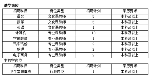 为进一步优化学校师资队伍,促进学校教学工作有序开展,经学校研究决定,现面向社会诚聘英才,招聘岗位如下: