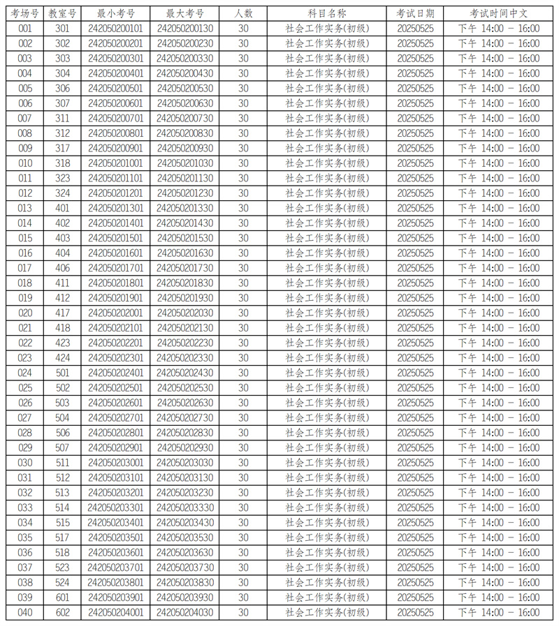 2025年5月25日 上午 9:00-11:00 社会工作综合能力(初级) 下午 14:00-16:00 社会工作务实(初级)