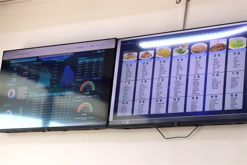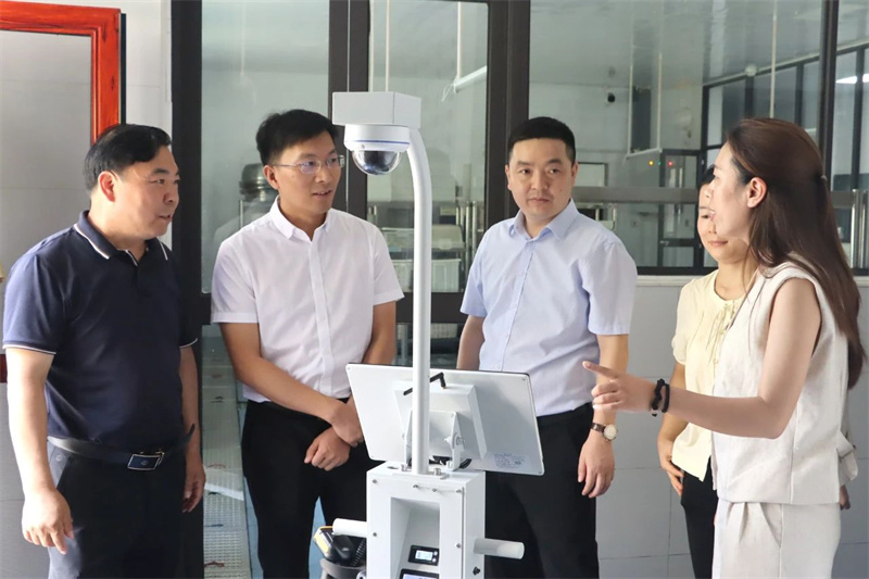 副区长赵翔一行实地查看了学校“数字食堂”监管平台的当日数据,听取了关于“互联网+监管”数字食堂监管平台运作流程的汇报,详细了解了学校食材采购、储存、加工流程及菜谱制定等细节。