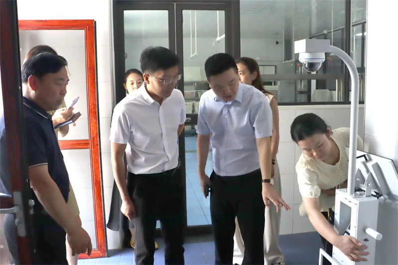 6月24日,伍家岗区副区长赵翔、办公室副主任余艺,伍家岗区市场监督管理局、伍家乡监管所副所长胡开罗深入宜昌市现代信息学校开展调研工作,就“校园餐”食品安全工作开展调研检查。宜昌现代教育集团董事长田水荣、总经理胡一杰、校长吴昌钧、后勤保障部副部长龚红艳全程陪同。