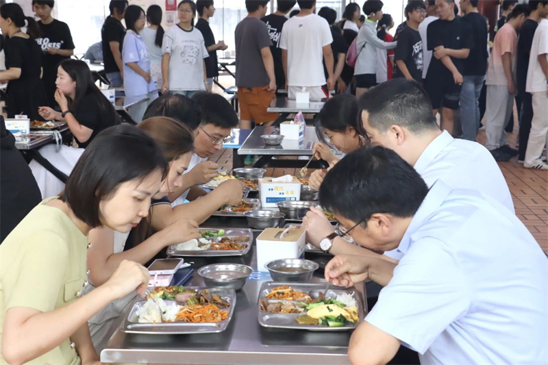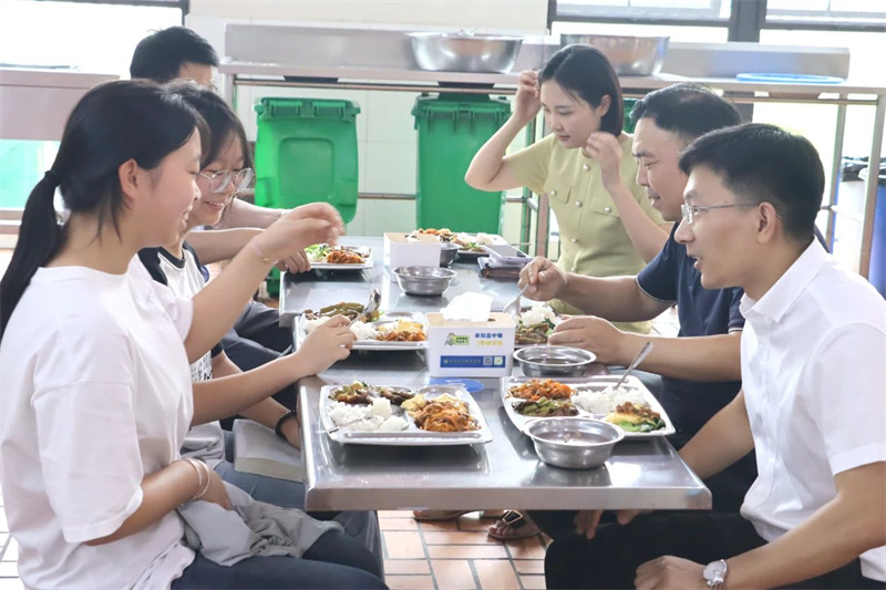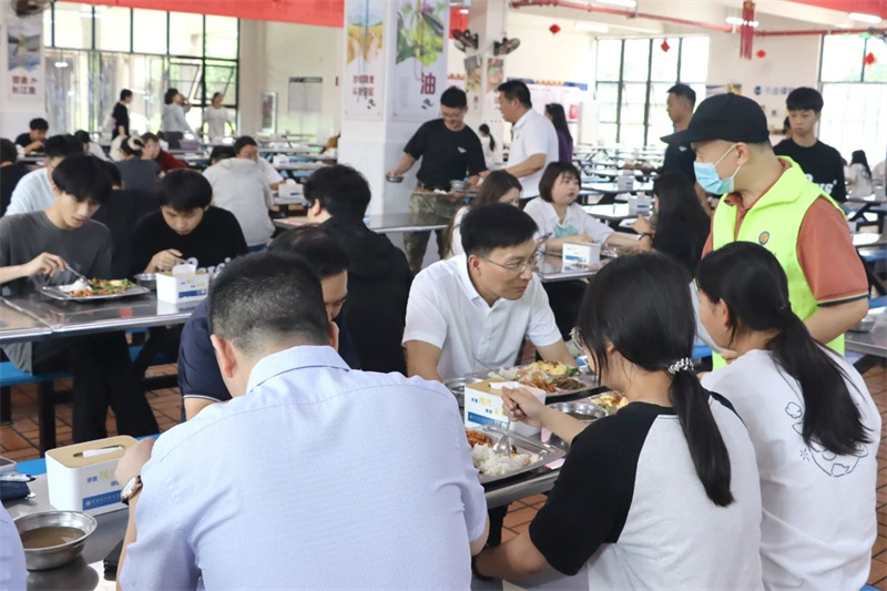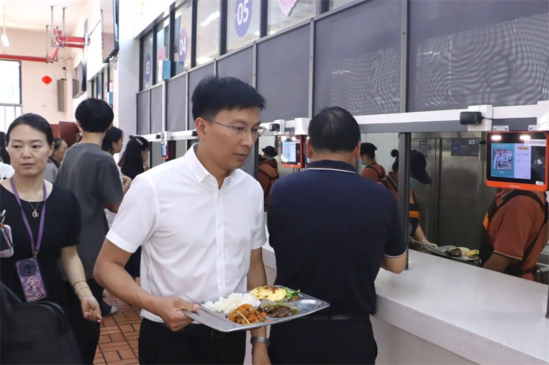 随后,他检查了午餐加工制作、现场环境卫生等情况。午餐时段,赵翔一行坐在陪餐席陪同在校学生就餐,亲身感受学校就餐环境,现场了解学生日常就餐情况。