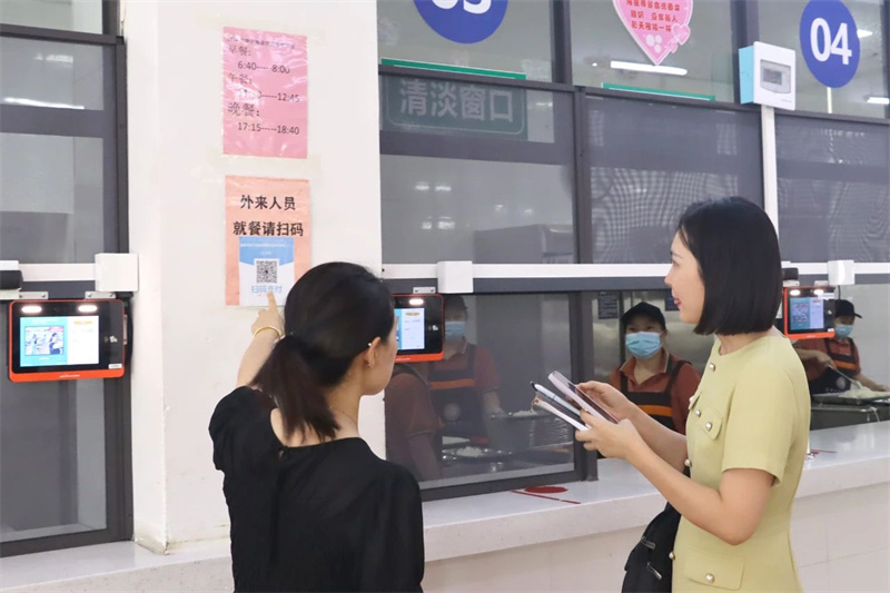 学校餐食食材新鲜,营养搭配均衡,就餐环境卫生舒适,领导就餐前规范扫码、刷卡,支付餐费。在校园食品安全和膳食经费管理方面,学校严格落实主体责任,呈现了较高的安全管理水平,得到了领导的高度认可。
