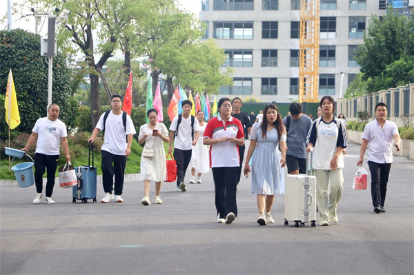 迎新现场有条不紊,各个岗位工作人员分工明确,或办理手续、或答疑解惑、或搬运行李、或协调物资,各司其职,各尽其美,为新生提供从进校门到入宿舍的“一条龙”服务。人头攒动的校园内,各项工作秩序井然。
