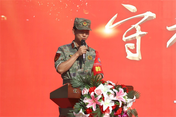 军训教官代表黄超作表态发言。表示教官团队已准备就绪,将以满腔热忱与专业素养,全程为同学们的成长保驾护航。并郑重承诺将严格执行武装部及学校的管理要求,科学实训,灵活组训,文明组训,同时积极配合班主任工作,加强沟通协作,共同保障军训顺利实施。