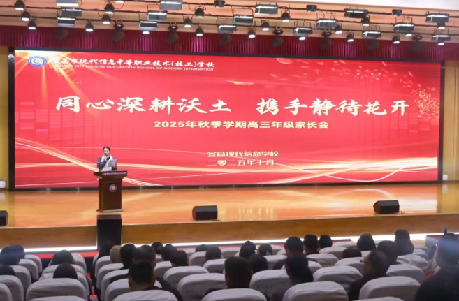 秋光潋滟,丹桂盈香。10月25日上午,宜昌现代信息学校以“精准施策,携手护航”为主题的高三年级家长会在学术报告厅隆重举行。校领导、高三全体教师与家长齐聚一堂,共话备考策略,共筑成长桥梁,凝聚起助力学子迎战高考的坚定力量。