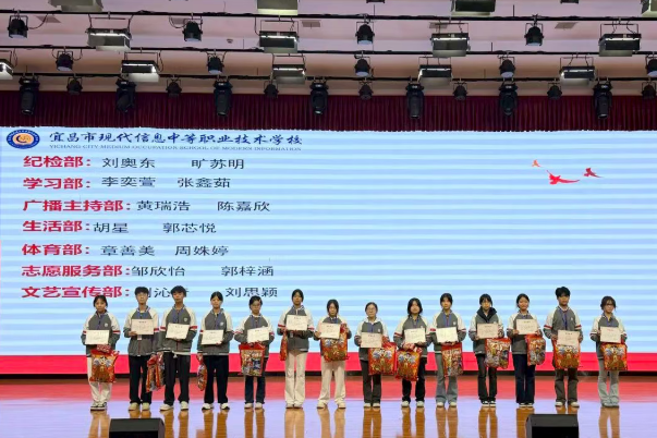 在随后的部门工作汇报环节中,学生会各部部长依次登台,就十月工作进行了系统梳理与汇报。学习部高效完成了“祖国颂”大型活动的统分工作,并持续协助课程处开展早读、眼保健操督导、检查工作;文艺部精心组织了课间操开场舞及多项文艺表演,丰富了校园艺术生活;纪检部在日常纪律与卫生检查中恪守公平、公正、公开原则,有效维护了校园秩序;志愿服务部成员坚持每日午间清洁校园,并在大型活动中提供志愿服务;生活部则聚焦校园日常生活,顺利完成巡视食堂、巡查教学楼水电安全等工作,切实解决了诸多实际问题。