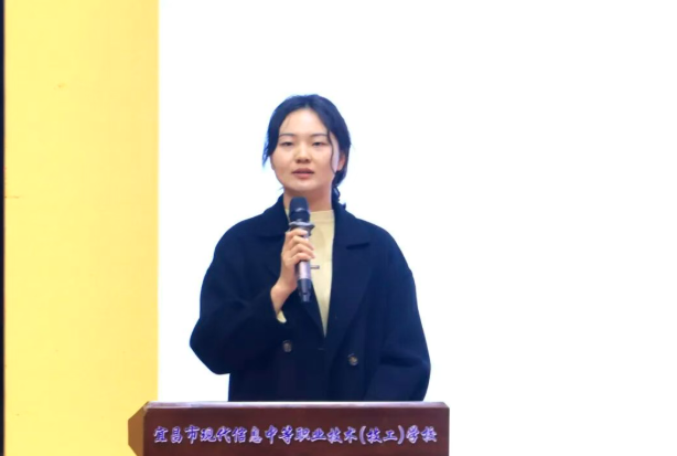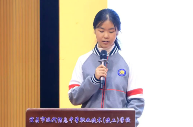 2501班姚思睿则在发言中表达了进入新校园的憧憬与两个月来的成长感悟,感谢老师们的悉心教导和父母的无私付出,并代表全体同学立下勤奋学习、苦练技能、不负青春的理想。