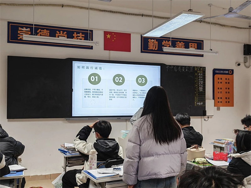 考风正则学风浓,学风浓则校风正。各班级在每次大考前组织学生集中签署《诚信考试承诺书》,承诺书上清晰列明了考试违纪作弊的具体情形与相应后果。同学们逐字逐句阅读承诺书内容,深刻认识到考试诚信的重要性,随后郑重地在落款处写下自己的姓名。一纸承诺,不仅是对学校考纪的遵守,更是对自身品德的坚守。通过签署承诺书,同学们从思想上筑牢了诚信考试的防线,主动摒弃侥幸心理,树立起“以诚信为荣,以作弊为耻”的价值观。