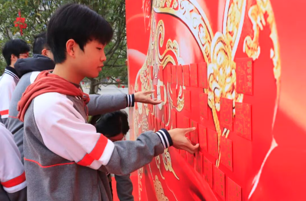 学校特别设置高三心愿红包抽取环节,高三获奖学子随机抽取心愿卡并指定老师完成心愿,暖心互动为冲刺备考的高三学子送上温暖与力量。