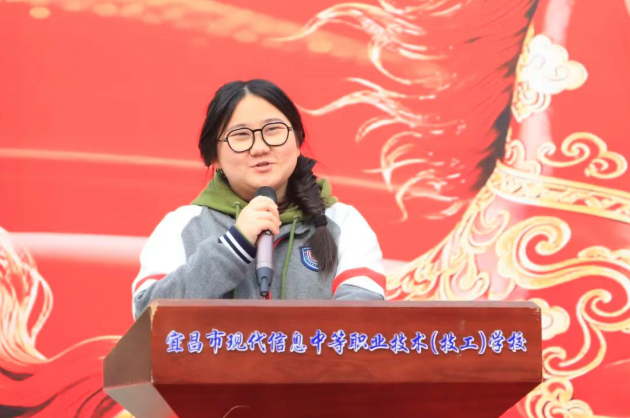 优秀学生代表刘慧文上台发言,分享了自己的学习心得与奋斗目标,传递了新时代职教学子脚踏实地、奋勇争先的青春风采。