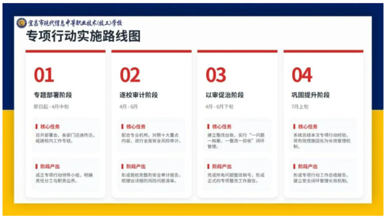 会议围绕专项行动总体目标、组织架构、重点任务、时间节点、保障措施等方面进行了详细部署,明确以校园安防、消防安全、燃气安全、设施设备、交通安全、心理健康教育、校舍施工、实验室危化品安全、食品安全、校服教辅监管及常规工作落实十大领域为重点,全方位开展安全风险防控专项审计,着力整治“重部署轻检查、重检查轻问责、重安排轻培训”等突出问题,压紧压实校园安全“最后一百米”责任,全力保障校园平安稳定、健康发展。